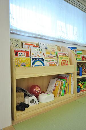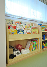お子様の本やおもちゃが使いやすく・片付けやすいように、専用の収納を造作。「見た目もスッキリで友人にも大好評ですよ。」と奥様。