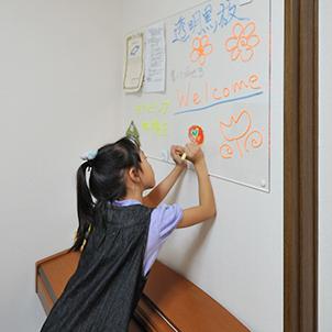 水性マーカーで文字が書け、学校でもらう賞状や予定表も貼れる、オシャレな透明黒板。パパの帰りが遅いときでも、ここにメッセージを書き込めば、ちゃんとコミュニケーションが取れますね!
