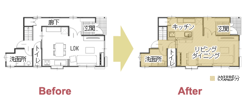| リフォーム箇所 | リビング、ダイニング、キッチン、玄関、洗面所 |