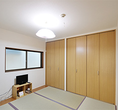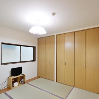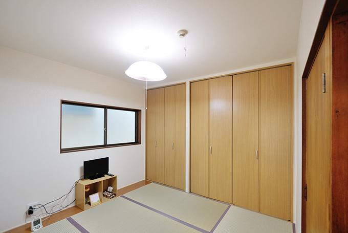 昼間はリビングとの引き戸を開けてオープンに、夜は親世帯の寝室にもなる和室。クローゼットの奥行きは布団も収納しやすいよう少し深めに設計。