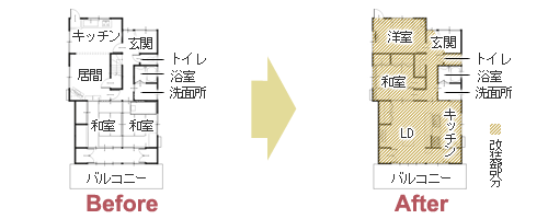 | リフォーム箇所 | キッチン、ダイニング、リビング、トイレ、洋室、和室、床暖房 |