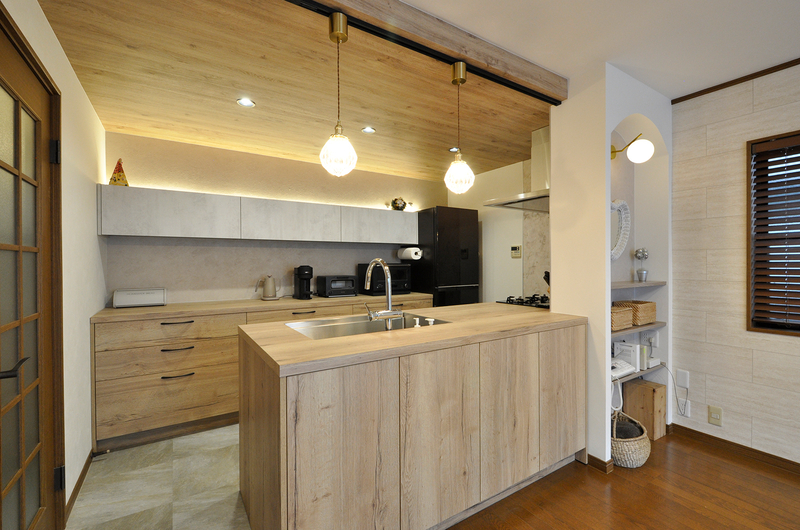 築26年が経過し、今までにお風呂やトイレなどのリフォームを済ませてきて、「いつかはキッチンもリフォームしたい...」とお考えだったY様。インスタグラムやメーカーのカタログなどで好きなインテリアの情報収集する日々を送っていました。そんな折、メーカーショールームを何社か訪れた中で、GRAFTEKT(グラフテクト)の木目調のキッチンに一目惚れ。「毎日使うならこのキッチンにしたい!」との思いがしだいに強くなり、間取りや内装なども含めて、LDKリフォームをする運びとなりました。