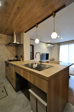 木目調の天板が印象的なグラフテクトのキッチン