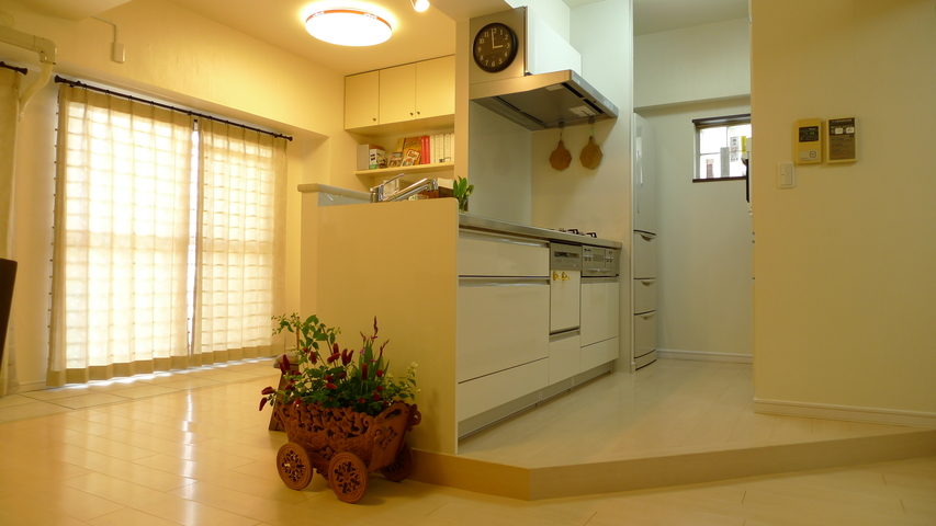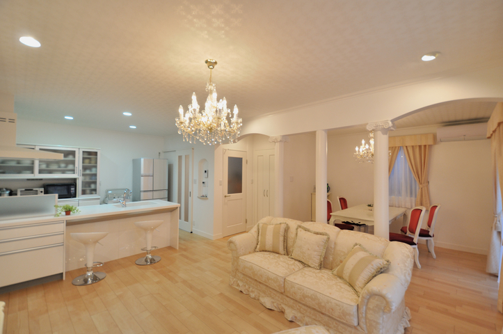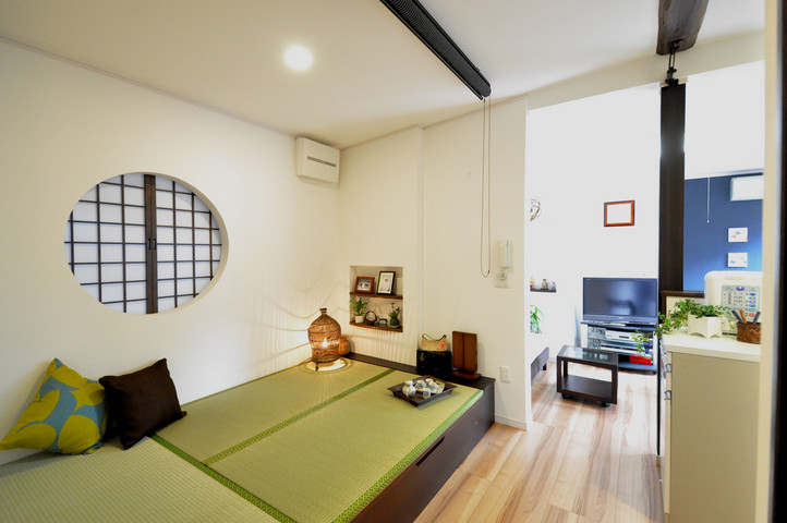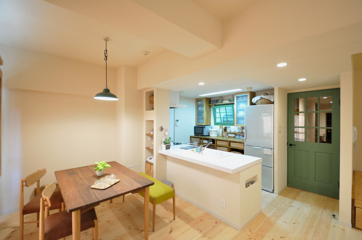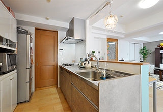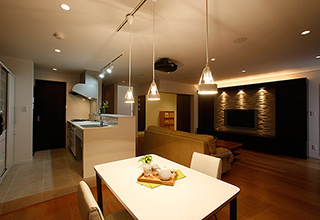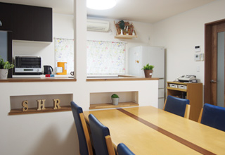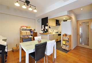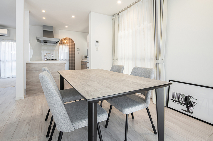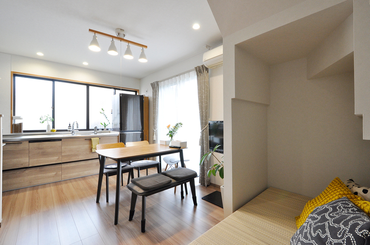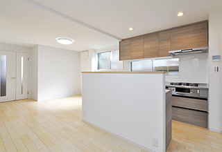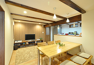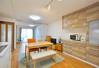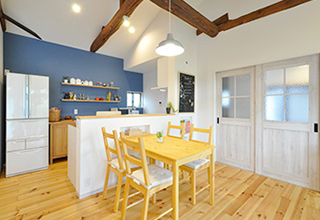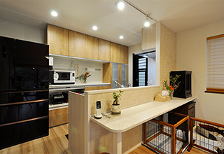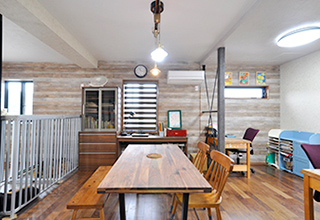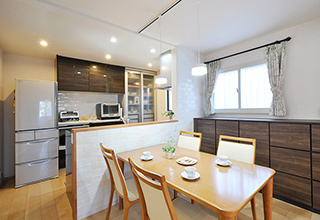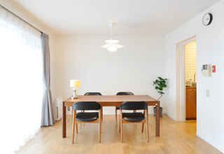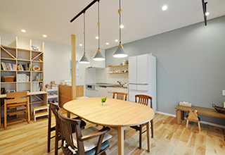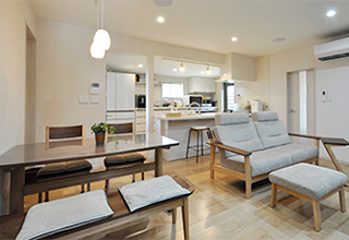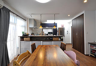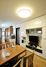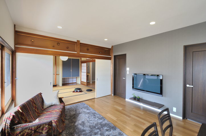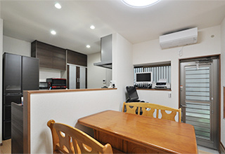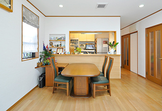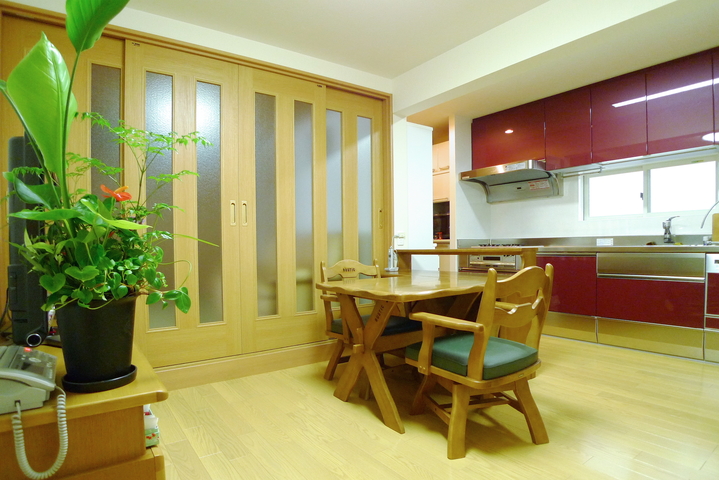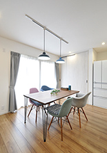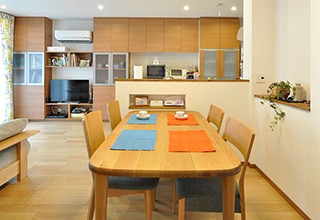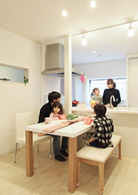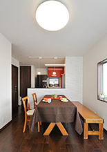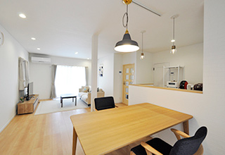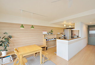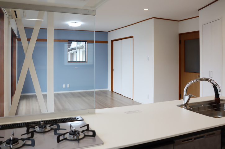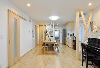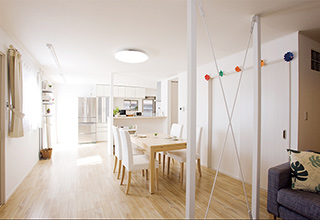 リビングとの境は間仕切り折戸を設置。家族構成や冷暖房の効率など、その時々の...