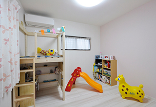 決して広くはないものの、ベッドとデスクが置けて、収納スペースも確保した子ど...