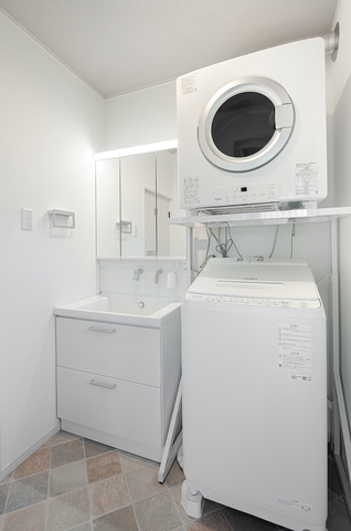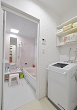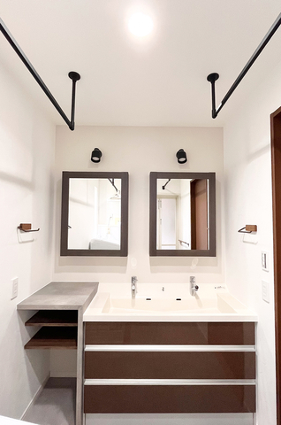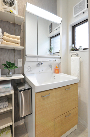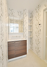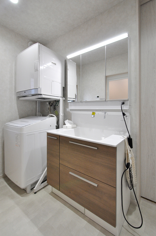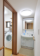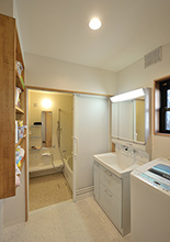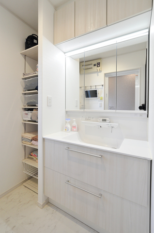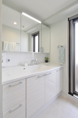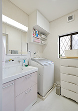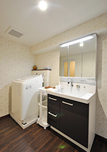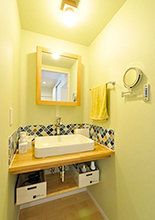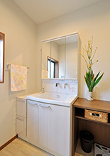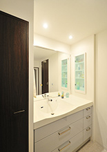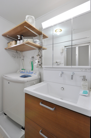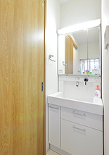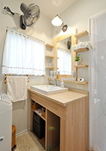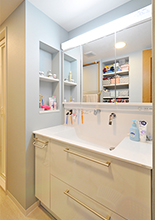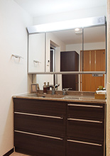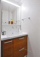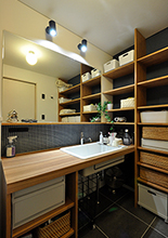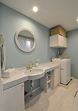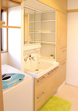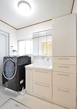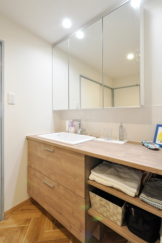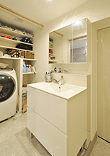 洗面化粧台は「今よりコンパクトで十分」とのご要望に合わせ、幅1000mmのTOTO/オ...