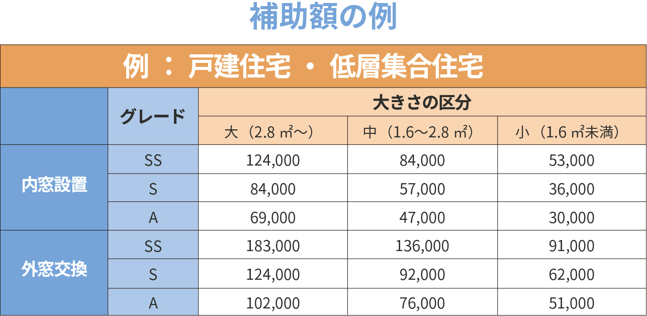 高い断熱性能を持つ窓への改修に関する費用の1/2相当等を定額補助(上限200万円)されます。