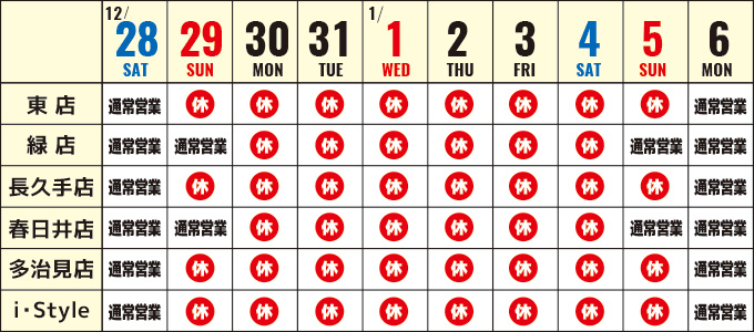 ※店舗により休業期間が異なりますのでご注意ください。