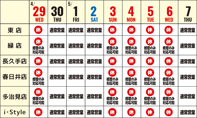 店舗:東店・長久手店・i・Style