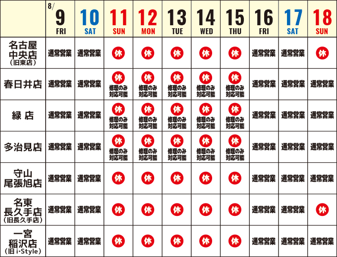 なお修理・メンテナンスにつきましては、期間中も休まず対応をしております。何かお困りごとがございましたらどうぞお気軽にお電話ください。