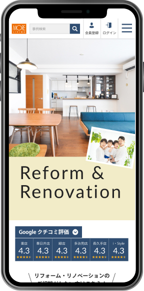2021年12月09日 ホームページリニューアルのご案内 2021年12月20日(月)にモアリビング のWEBサイトがリニューアルいたします。 今まで以上にスマホ画面で見やすく・操作がしやすくなるだけでなく、Googleクチコミと連動してお客様の生のお声が見えるようになったり、お役立ち情報をコラムで発信したりとリフォーム・リノベーションをお考えの方の「それ知りたかった!」にお応えできるようなコンテンツを盛り込んでいきます。今後のモアリビング にますますご期待ください!