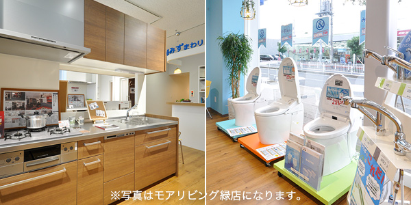 新しい店舗は緑店同様、キッチンやトイレ、お風呂、洗面化粧台など、
