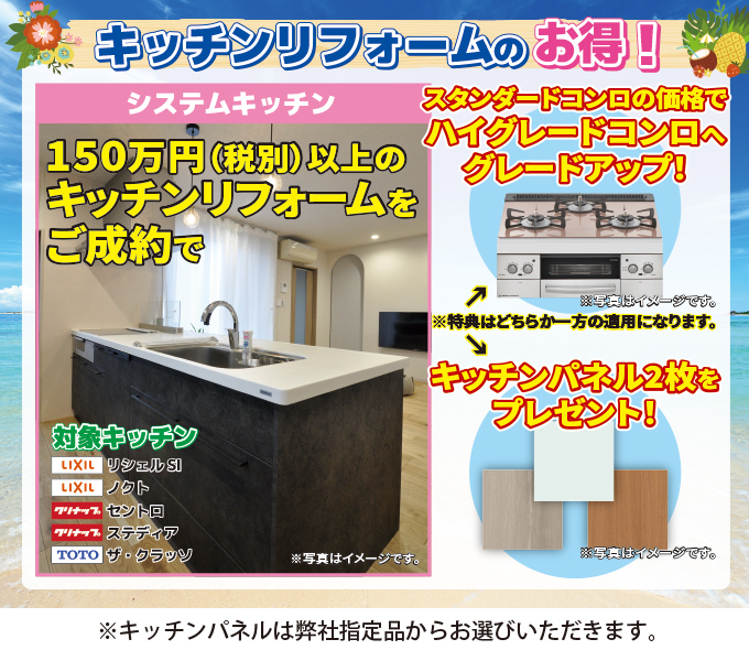 150万円(税別)以上のキッチンリフォームをご成約の方