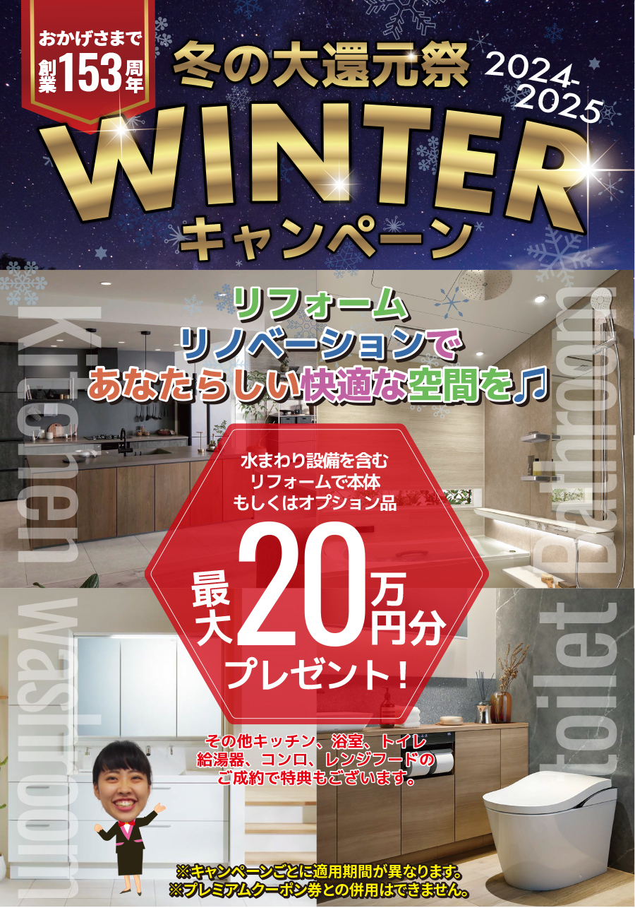 おかげさまで創業153周年 冬の大還元祭 WINTERキャンペーン(2024-2025) リフォーム・リノベーションであなたらしい快適な空間を