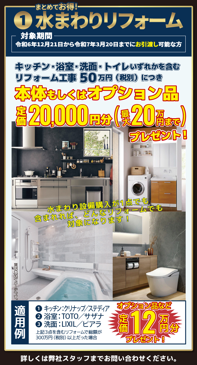 ※❶水まわりリフォーム特典との併用可