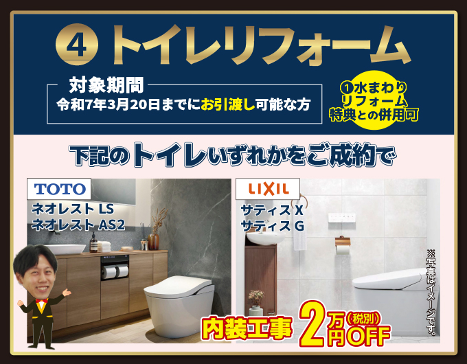 下記のトイレいずれかをご成約で内装工事2万円(税別)OFF