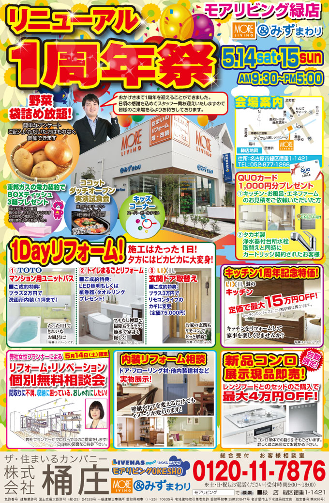 モアリビング緑店&みずまわり リニューアルオープン1周年祭を開催(2016年5月14日、15日)