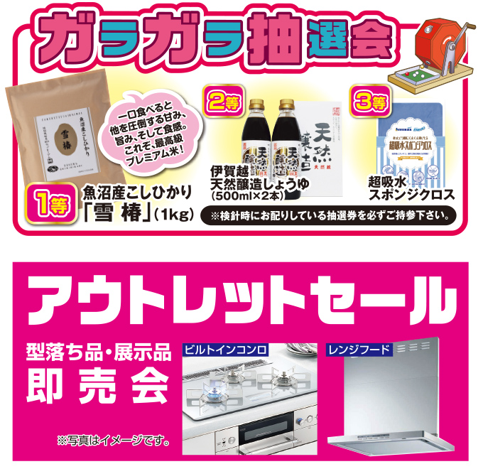 また早い者勝ちの展示即売会(アウトレットセール)も実施しております。