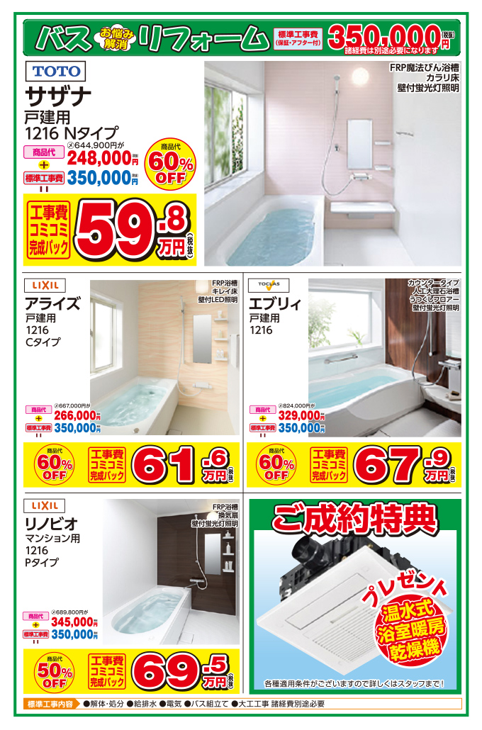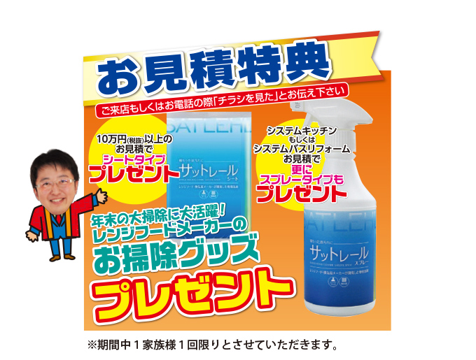水まわり設備(キッチン、お風呂、トイレ)のリフォーム、ガスコンロ・レンジフード・浄水付水栓・ガスファンヒーターの購入など、お住まいのグレードアップに幅広くご活用いただける3週間限定のスペシャルセールです