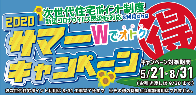 サマーキャンペーン2020 新型コロナウイルス感染症対応の次世代住宅ポイント併用で、Wでオトクにリフォーム