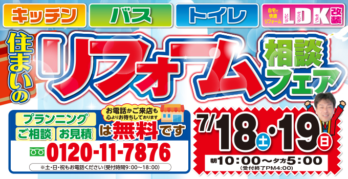 (多治見店)住まいのリフォーム相談フェアを自店舗にて開催!(2020年7月18日〜19日)
