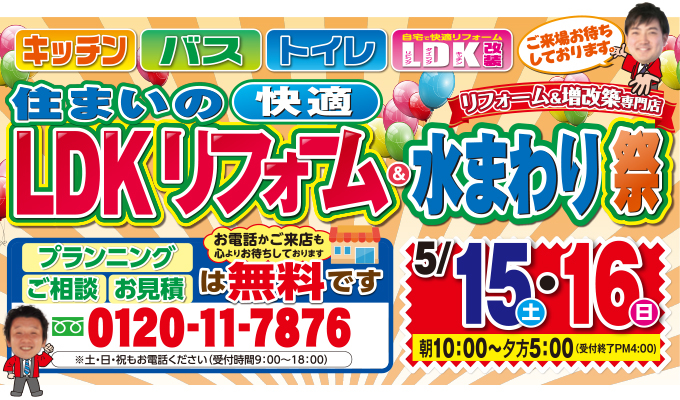 (緑店)住まいの快適LDKリフォーム&水まわり祭を開催します!(2021年5月15日〜16日)
