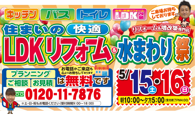 (多治見店)住まいの快適LDKリフォーム&水まわり祭を開催します!(2021年5月15日〜16日)