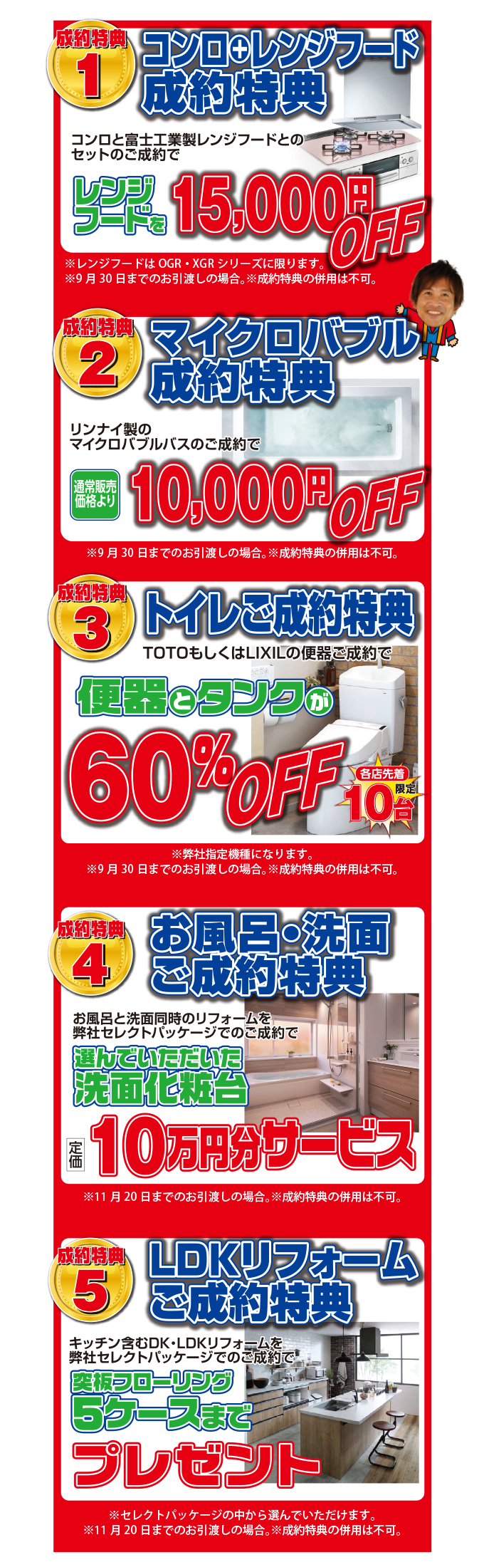 ※新規でリフォームをご相談された方が対象となります。すでに商談中の方は適用不可になりますので、ご了承ください。
