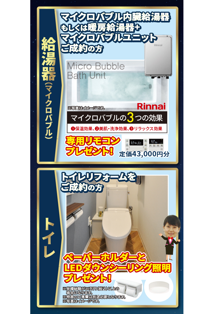 ※見積総額が20万円(税込)以上の場合になります。特典の工事費は別途必要となります。