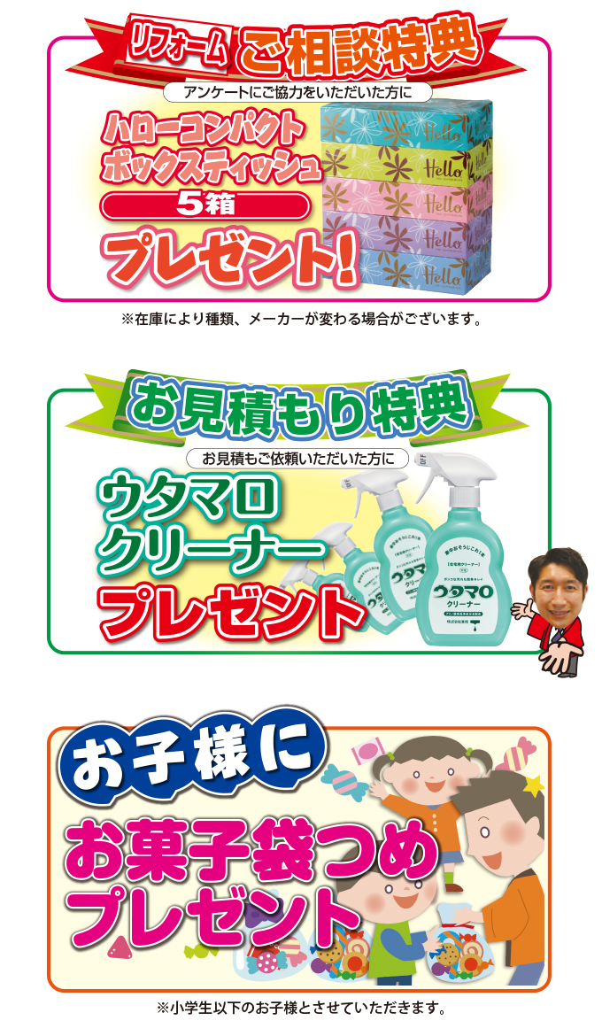 ※新規でリフォームをご相談された方が対象となります。すでに商談中の方は適用不可になりますので、ご了承ください。