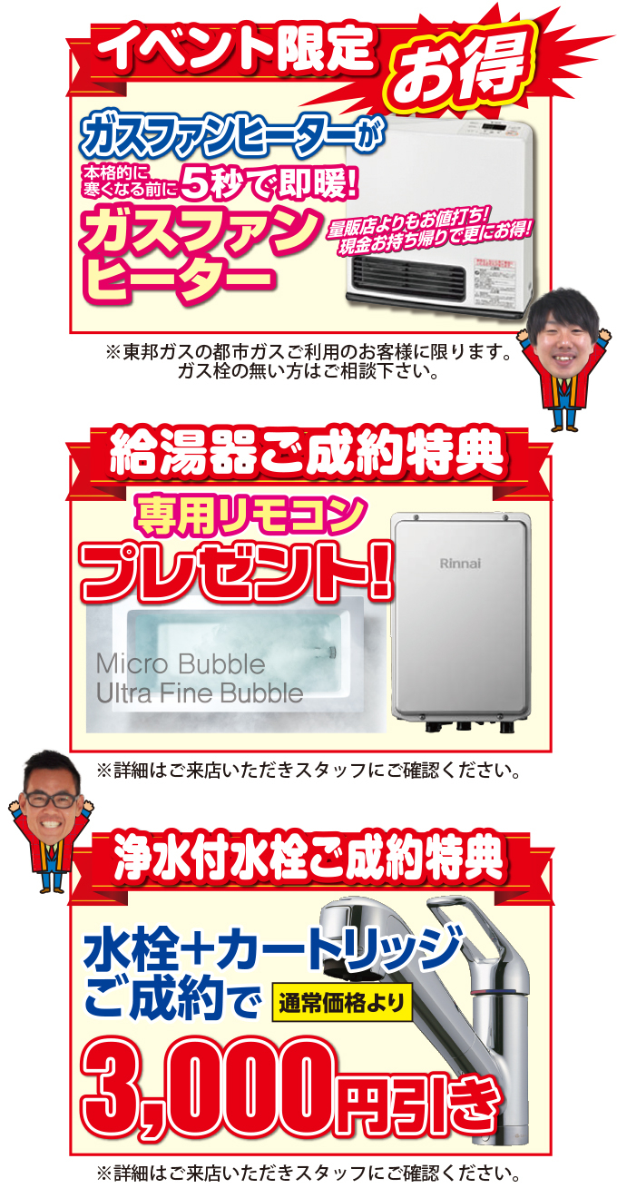 (3店舗同時開催)リフォーム&ガス機器セール(2023年11月3日〜11月26日)