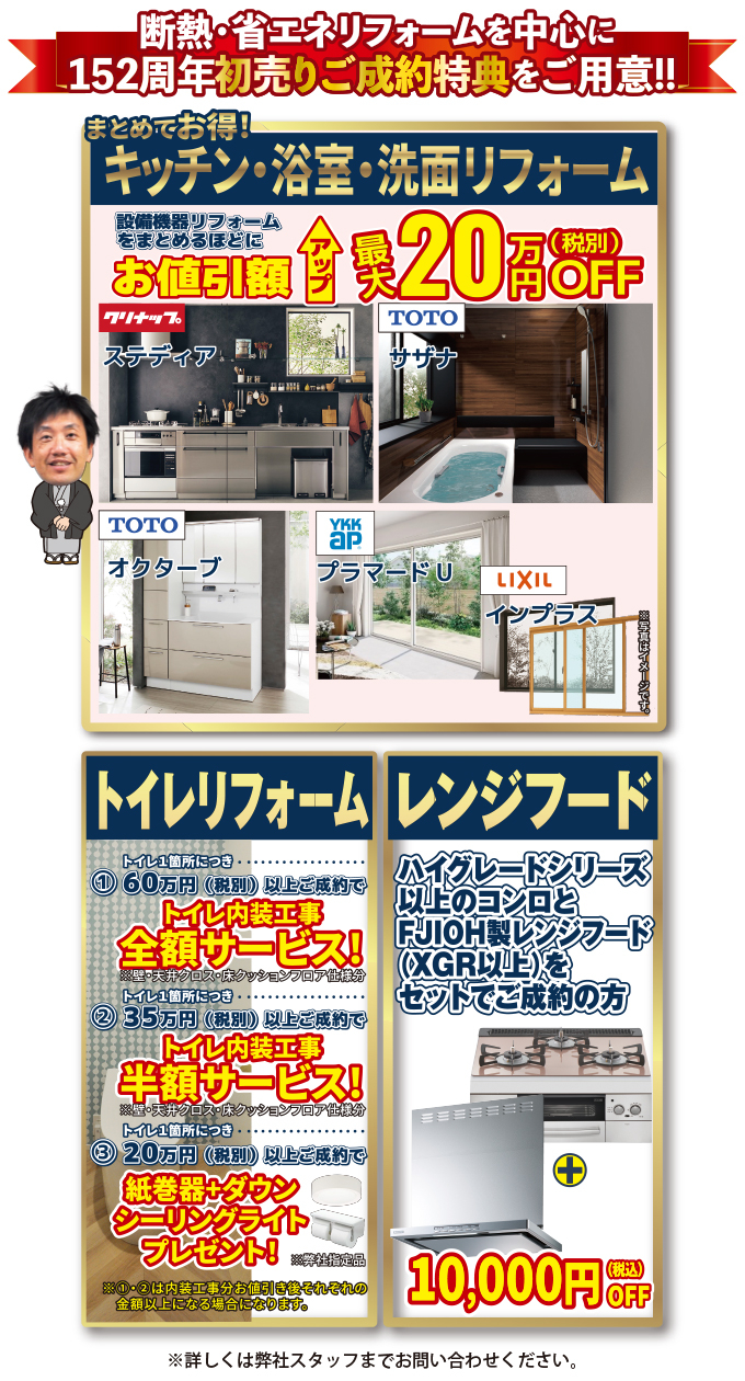 ※新規でリフォームをご相談された方が対象となります。すでに商談中の方は適用不可になりますので、ご了承ください。