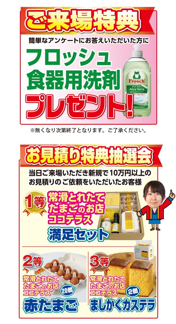 イベント開催中は混雑が予想されます。リノベーション・リフォームのご相談を個別にゆっくりとしたい方は、ご来店予約にて承っておりますので、そちらよりご予約をお願いいたします。