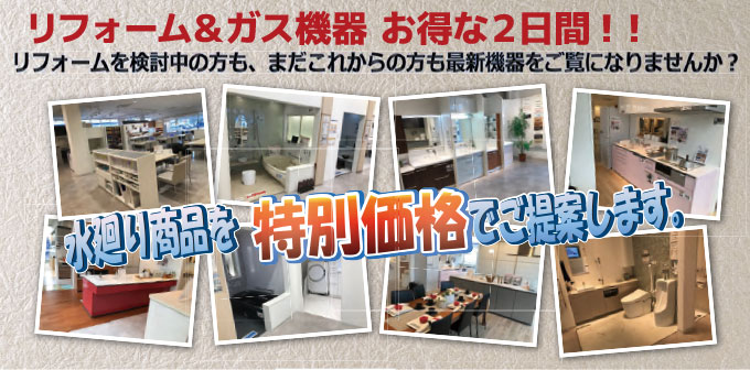 リフォームやガス機器がお得な2日間!最新機器をご覧・体感いただくことができます。