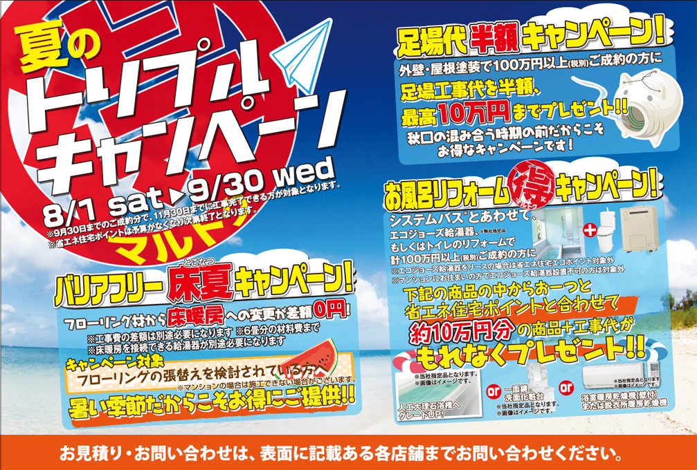 夏のトリプルキャンペーンを全店で開催中(9月30日まで)
