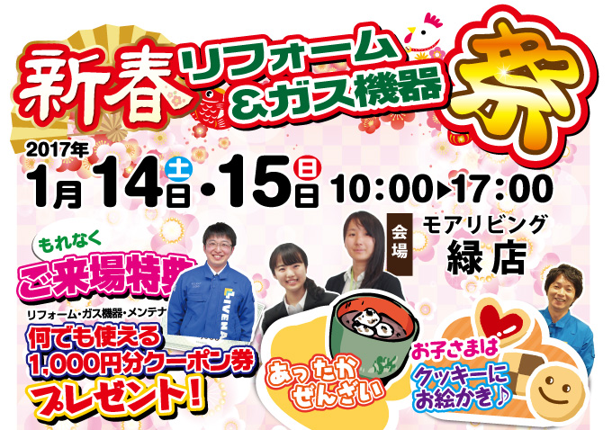 [緑店] 新春 リフォーム&ガス機器祭!(2017年1月14日、15日)