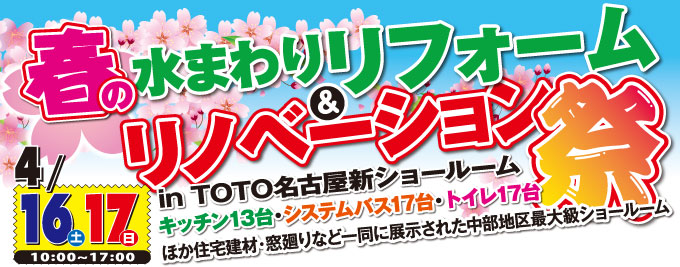 春の水まわりリフォーム&リノベーション祭をTOTO名古屋新ショールームにて開催(2016年4月16日、17日)