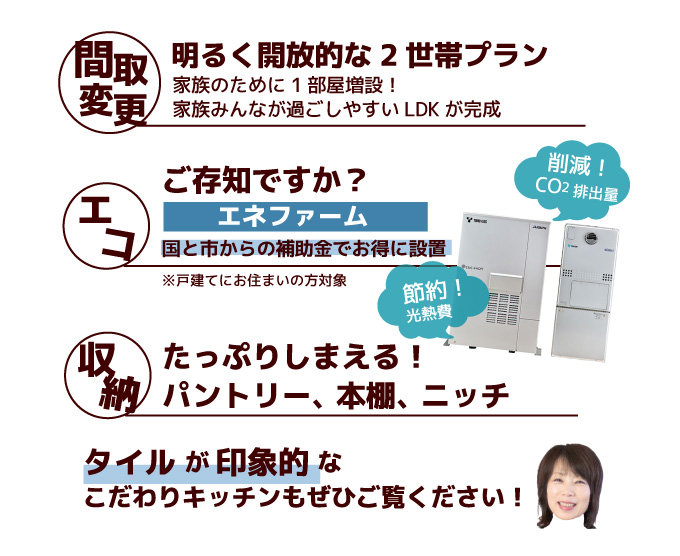 キッチン(リクシルアレスタ) / リビング・ダイニング / 収納 / パントリー / トイレ / 洗面 / エネファーム / 書斎コーナー / 1階部屋増設