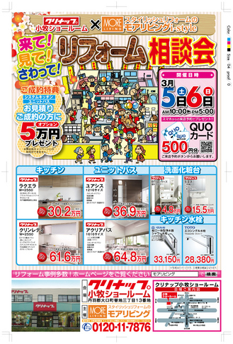 リフォーム相談会をモアリビングアイスタイル&クリナップ小牧ショールームにて同時開催(2016年3月5日、6日)