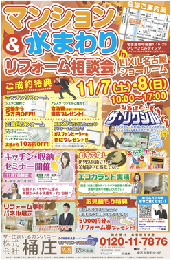 11月7日(土)8日(日)の2日間、LIXIL名古屋ショールームにて「マンション&水まわりリフォーム相談会」を開催いたします!