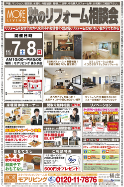 11月7日(土)、8日(日)の2日間で、長久手店にて「秋のリフォーム相談会」を開催いたします!