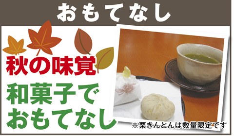 QUOカードのプレゼント(要見積)や秋の和菓子プレゼントなど、ご来店いただいたお客様にはとってもお得なイベントです!