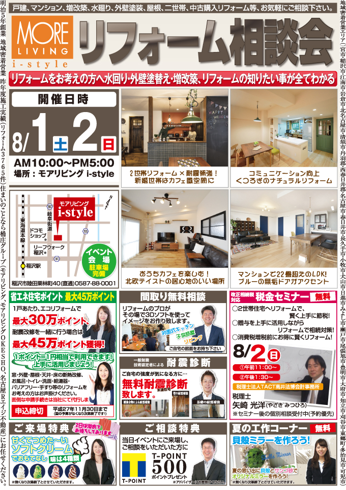 リフォーム相談会をアイ・スタイルにて開催(2015年8月1日、2日)