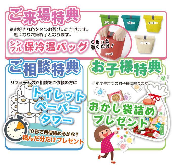 予約なしのご来場も大歓迎ですが、今なら「事前WEBご相談予約」で、3000円分のリフォーム券をプレゼント中!