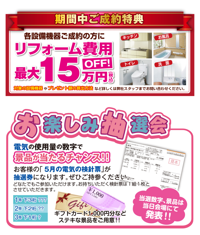 ※6月1日AM11:00までにご予約され、新規でリフォームをご相談された方が対象となります。すでに商談中の方は適用不可になりますので、ご了承ください。