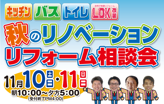 ※11月10日AM11:00までにご予約され、新規でリフォームをご相談された方が対象となります。すでに商談中の方は適用不可になりますので、ご了承ください。