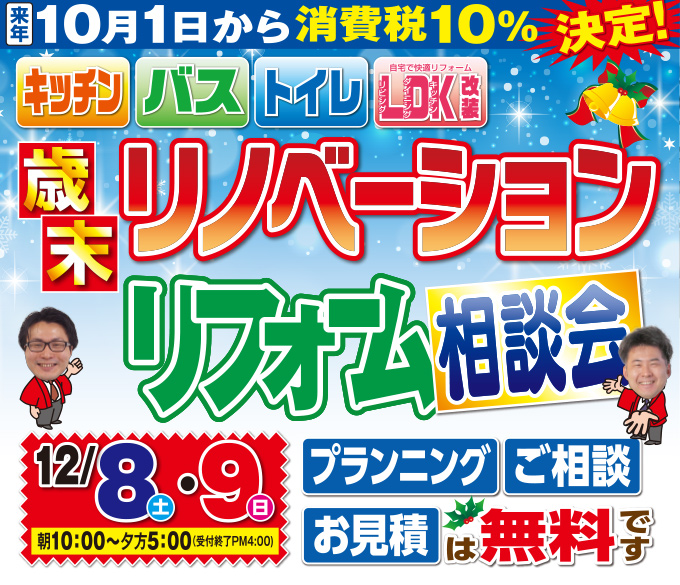 歳末リノベーション・リフォーム相談会をモアリビングi・Style(稲沢店)にて開催!(2018年12月8日〜9日)