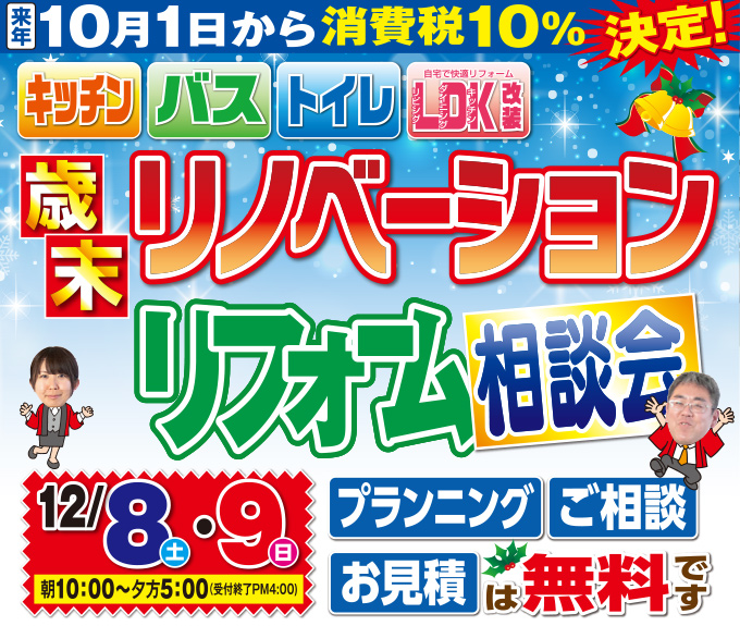 歳末リノベーション・リフォーム相談会をモアリビング長久手店にて開催!(2018年12月8日〜9日)