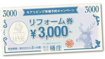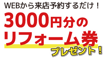 予約なしのご来場も大歓迎ですが、今なら「事前WEBご相談予約」で、3000円分のリフォーム券をプレゼント中!