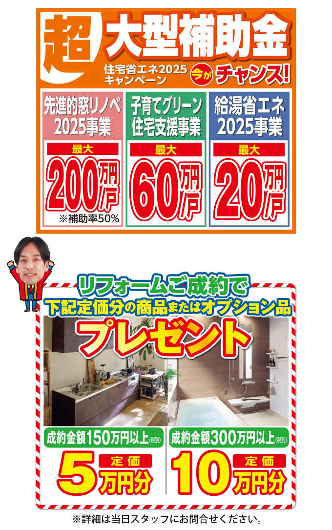 ※新規でリフォームをご相談された方が対象となります。すでに商談中の方は適用不可になりますので、ご了承ください。